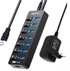 7-Port USB-3.0-Hub mit Smart-Ladeanschluss und Netzteil